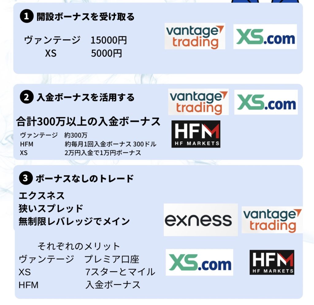 ヴァンテージ、XS、HFMのボーナスを使うと合計約3,055,000円もの入金ボーナスが貰えます